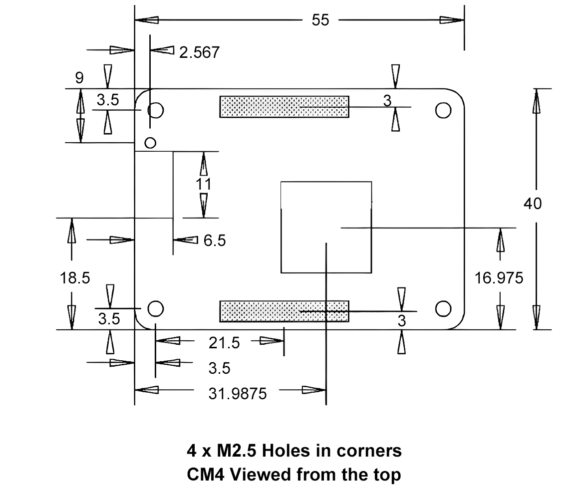 The electrical interface of the CM4 is via two 100-pin high density connectors, and the new physical form factor has a smaller footprint overall when the connectors are taken into account.