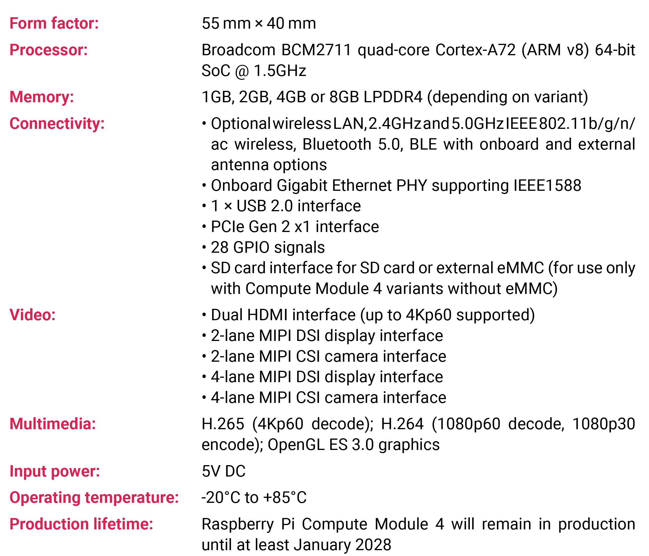 The design of the CM4 is loosely based on the Raspberry Pi 4, Model B, and for cost sensitive applications it can be supplied without the eMMC fitted; this version is called the Raspberry Pi Compute Module 4 Lite (CM4Lite).