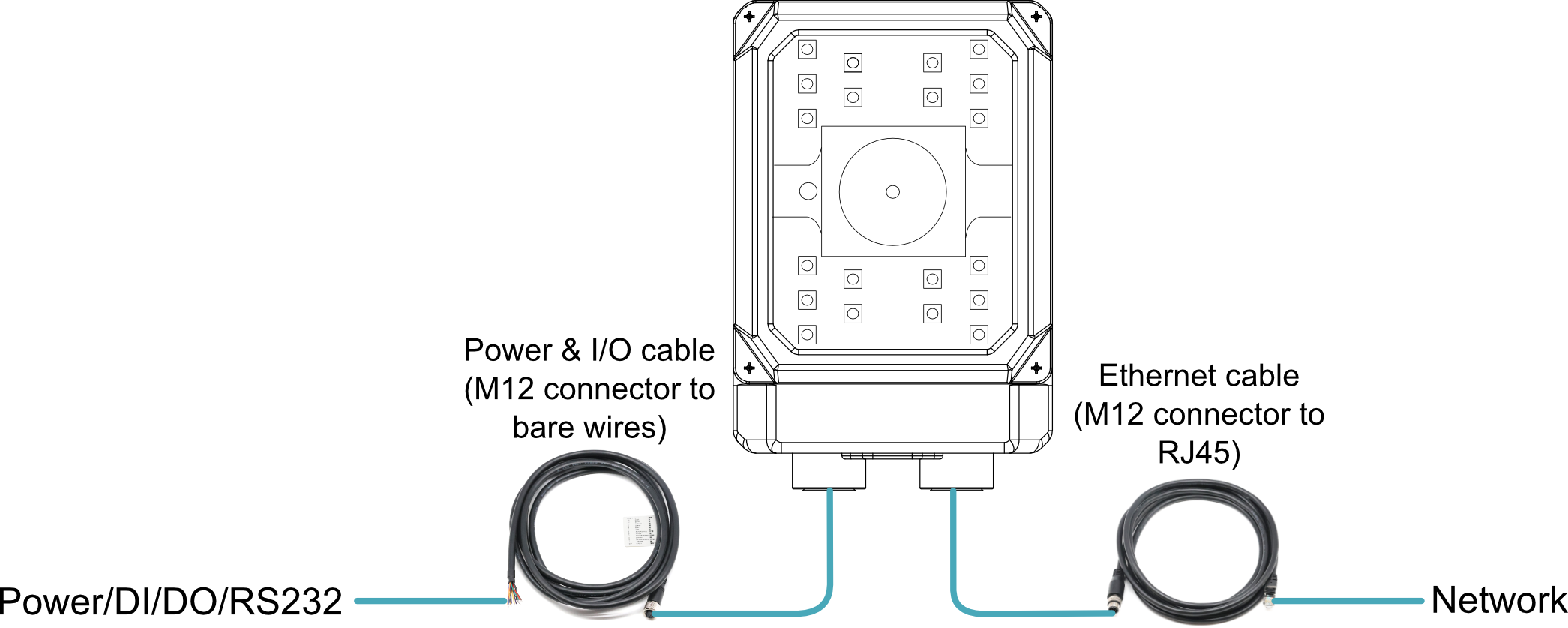- The Network Cable (M12 connector to RJ45) and Power & I/O Cable (M12 connector to bare wires) to be connected have been obtained.