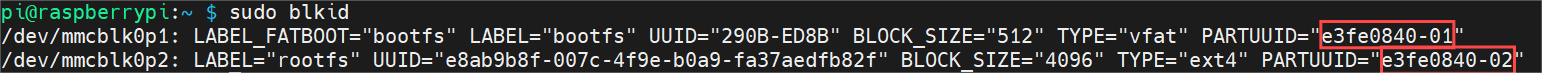 - Retrieve the device’s unique PARTUUIDs (partition identifiers).