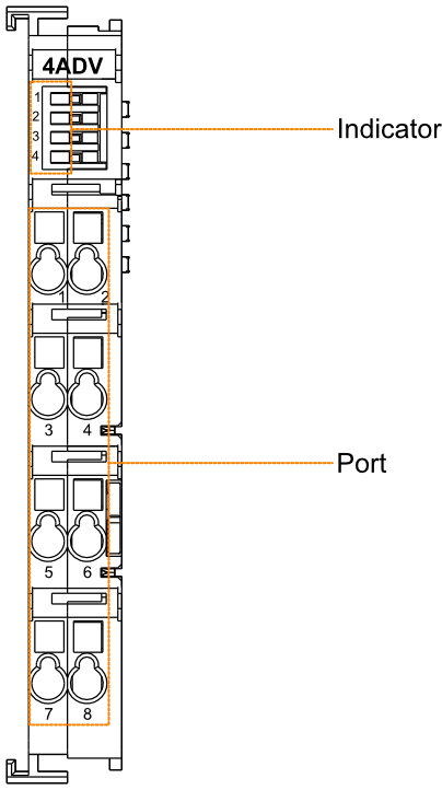 | 1~4 | VAI1/C1~VAI4/C4 | Green | 4 indicators correspond to VI1/C1~VI4/C4, which are independent of each other. The states of indicators are on, blink and off. - When used as a voltage input channel: