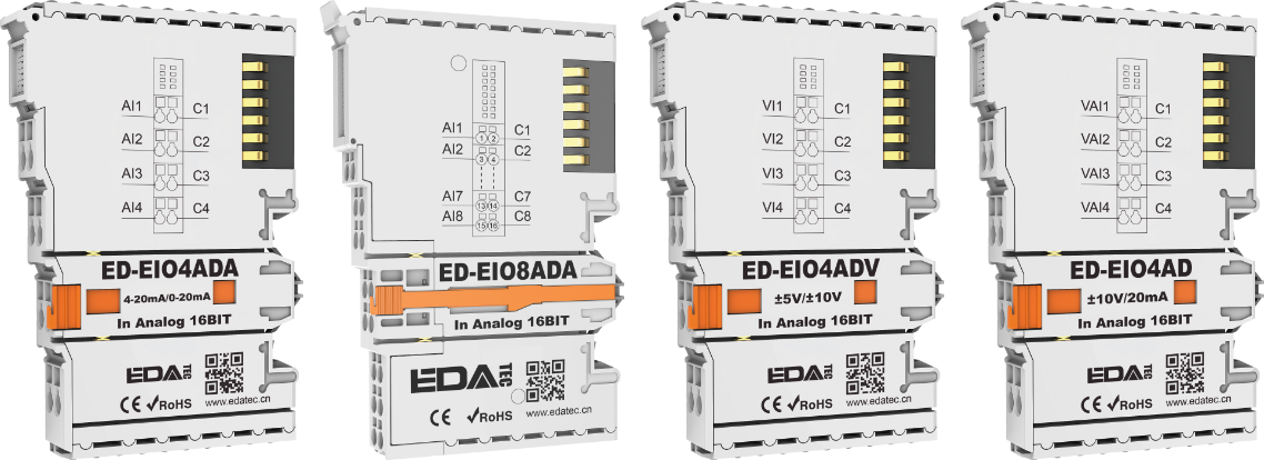 | ED-EIO4AD | 4-channel analog input module (voltage/current mixed), -5~5V/0~10V/-10~10V/4-20mA/0-20mA, configurable |