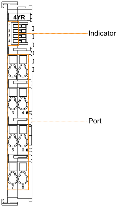 | 1~4 | CONTACT 1~CONTACT 4 | Green | 4 Indicators correspond to CONTACT 1~CONTACT 4, which are independent of each other. The states of indicators are on and off. - on: Relay is closed