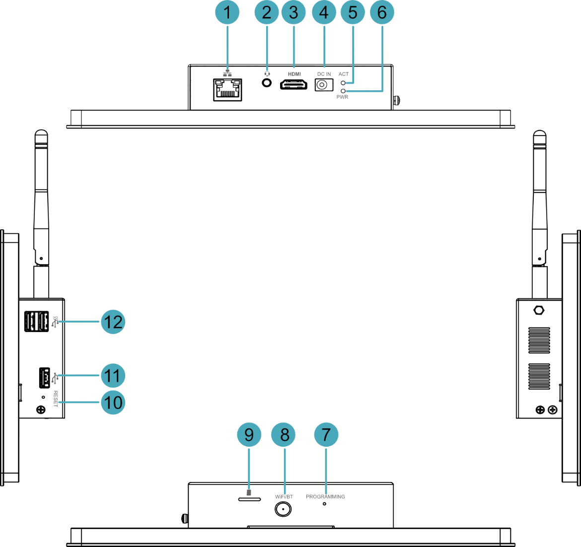 | 8 | 1 x Wi-Fi/BT antenna port (optional), SMA connector, which can connect to Wi-Fi/BT antenna. |