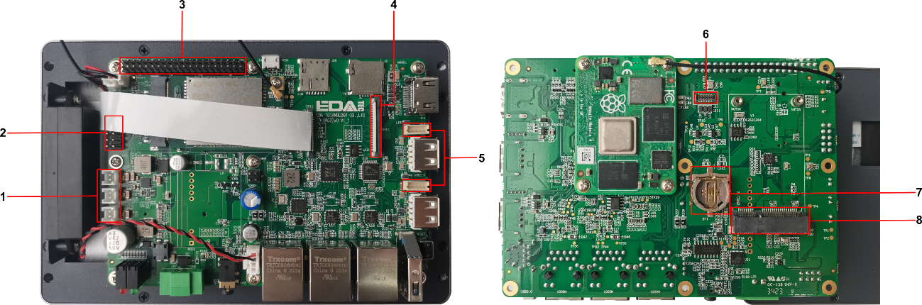 The ED-HMI2220-070C device supports RTC functionality. The motherboard is equipped with an integrated RTC battery holder, which allows for the installation of a CR1220 coin cell battery to serve as the RTC backup power source.