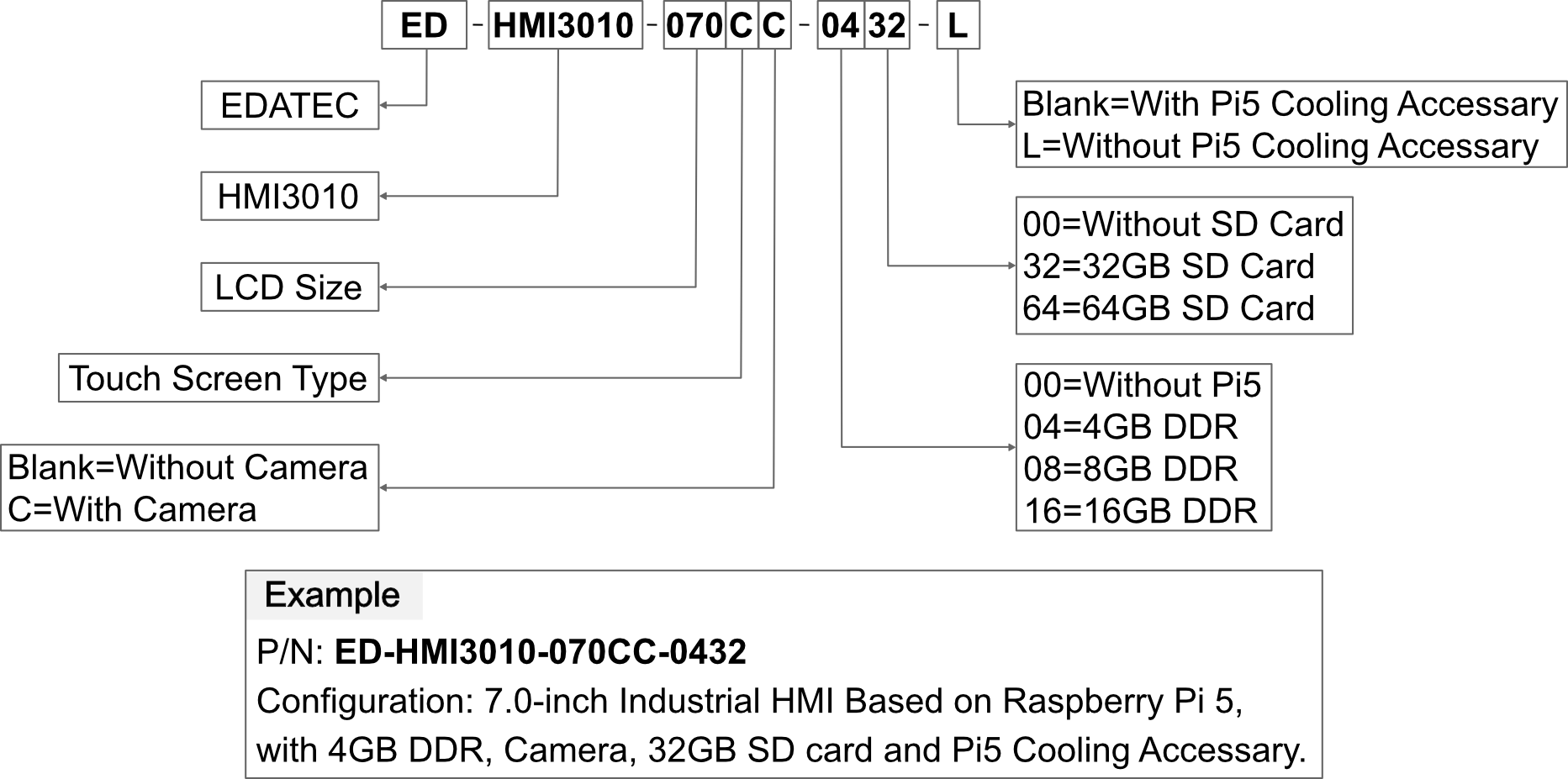 | ED-HMI3010-070CC-0000 | 7.0-inch LCD Touch Screen for Raspberry Pi 5, with metal case, camera and Pi5 Cooling Accessary. |