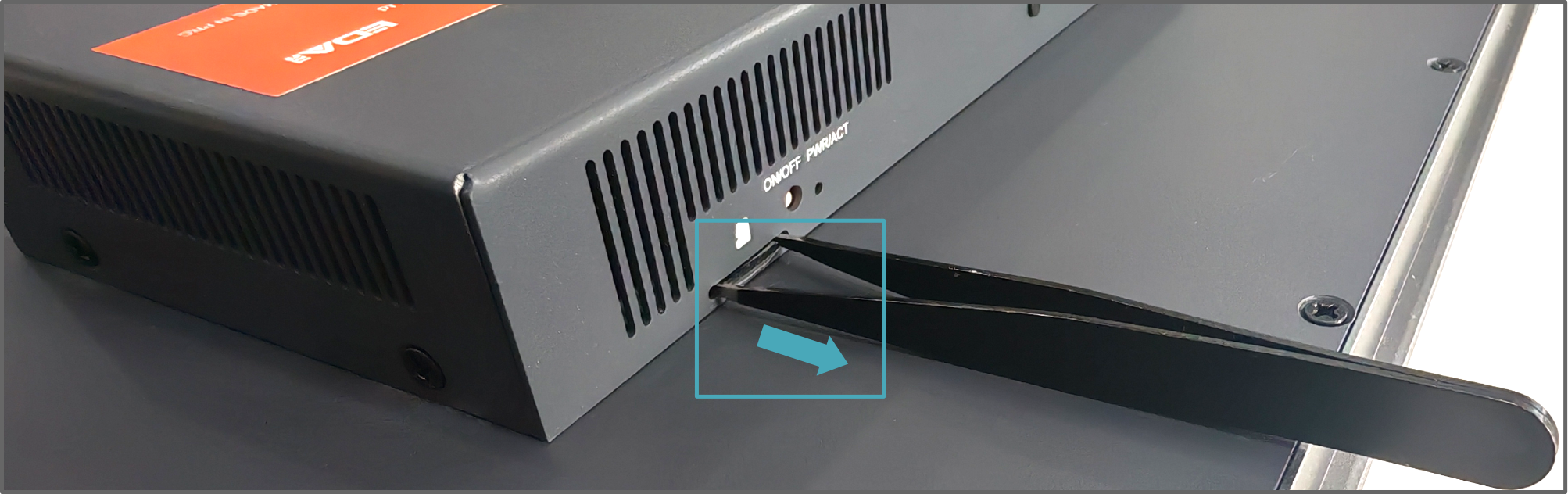 1. Using tweezers, grip the SD card and pull it outward along the arrow direction.