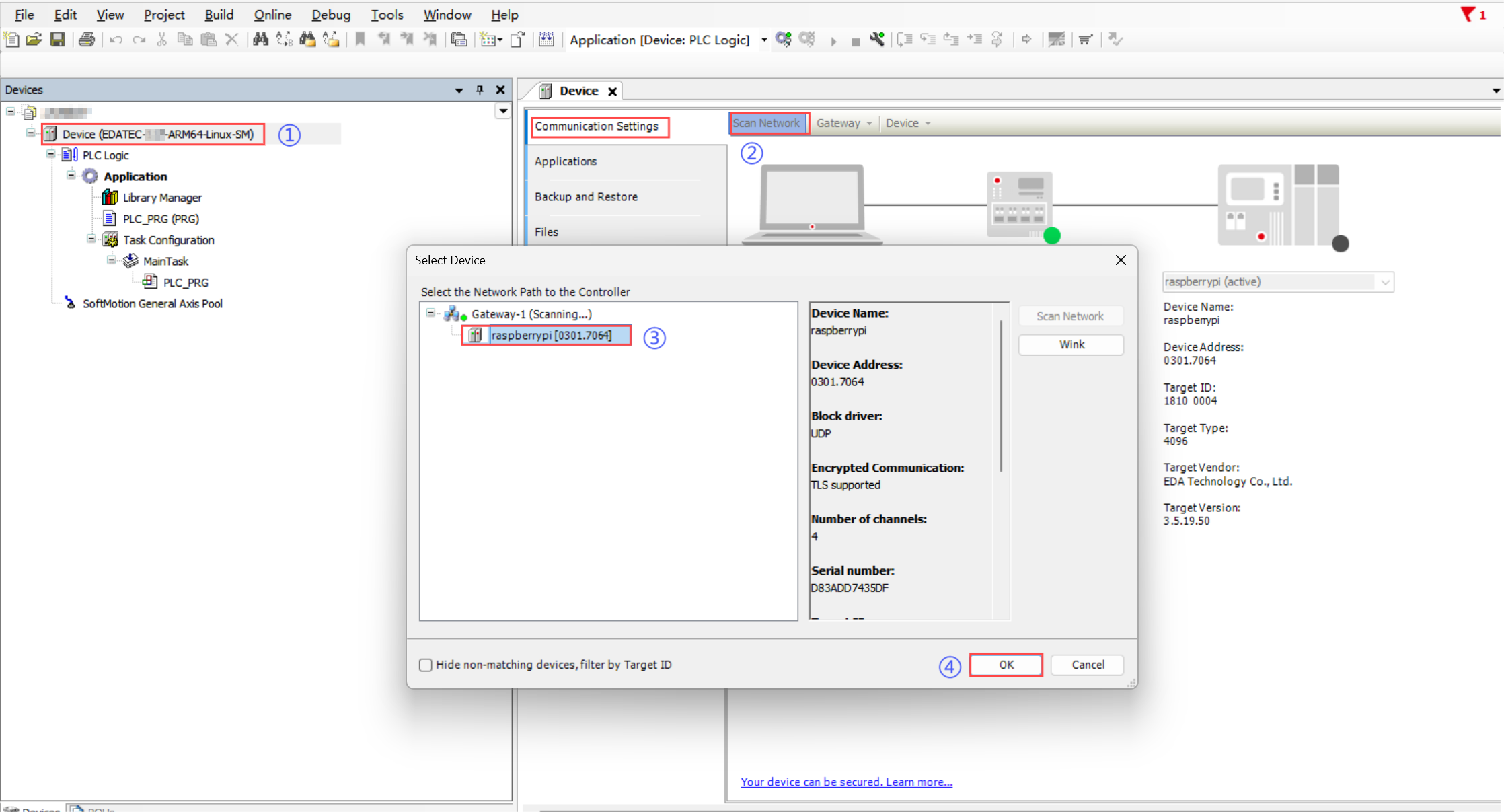 - An ED-PAC3020 device with a valid CODESYS license and its corresponding device description file.