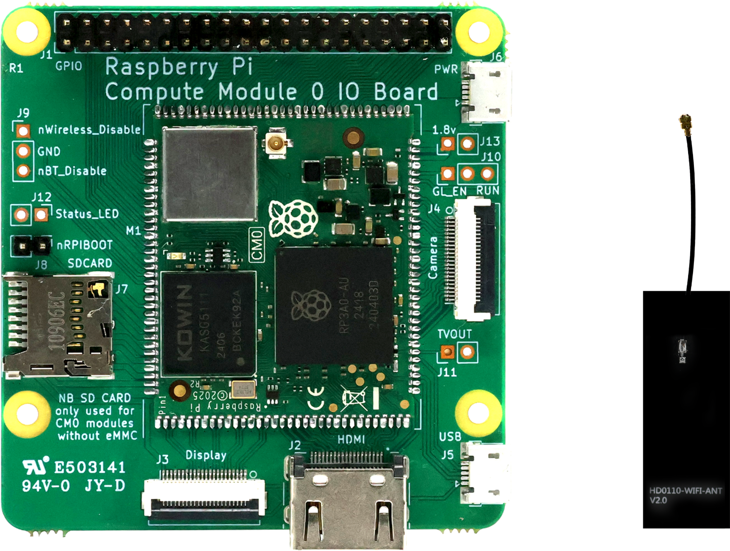 | Raspberry Pi Compute Module Zero Development Board | Raspberry Pi CM0(CM0100008,512MB SDRAM,8GB eMMC,Wi-Fi/BT) + Raspberry Pi CM0 IO板 + FPC天线 |