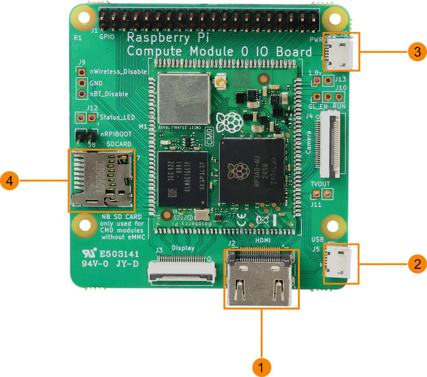 | 4 | 1 x Micro SD卡槽,因为Micro SD卡槽仅适用于CM0 Lite,但CM0 Dev Board默认标配8GB eMMC的CM0,故Micro SD卡在CM0 Dev Board上为无效接口。 |