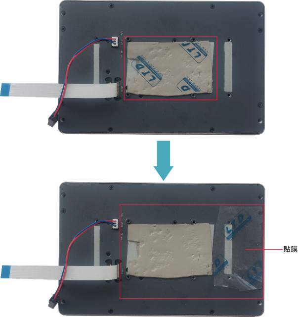 - 盖上外壳,插入4颗M3的螺钉,顺时针拧紧,将外壳固定在LCD屏的背面。