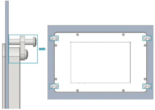 - 将ED-HMI3010-070C从外部嵌入到机柜中。