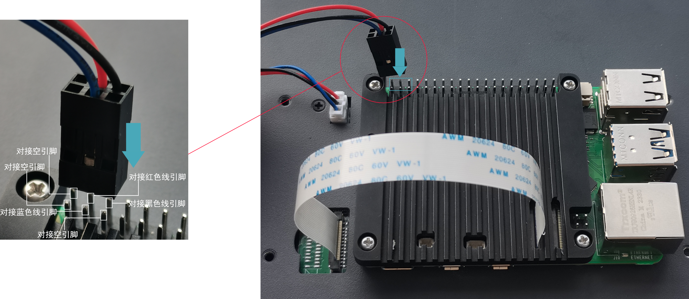 - 将电源线插入Raspberry Pi 5上40-Pin的对应针脚。