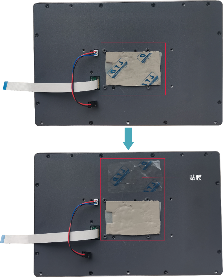 - 盖上外壳,插入4颗M3的螺钉,顺时针拧紧,将外壳固定在LCD屏的背面。