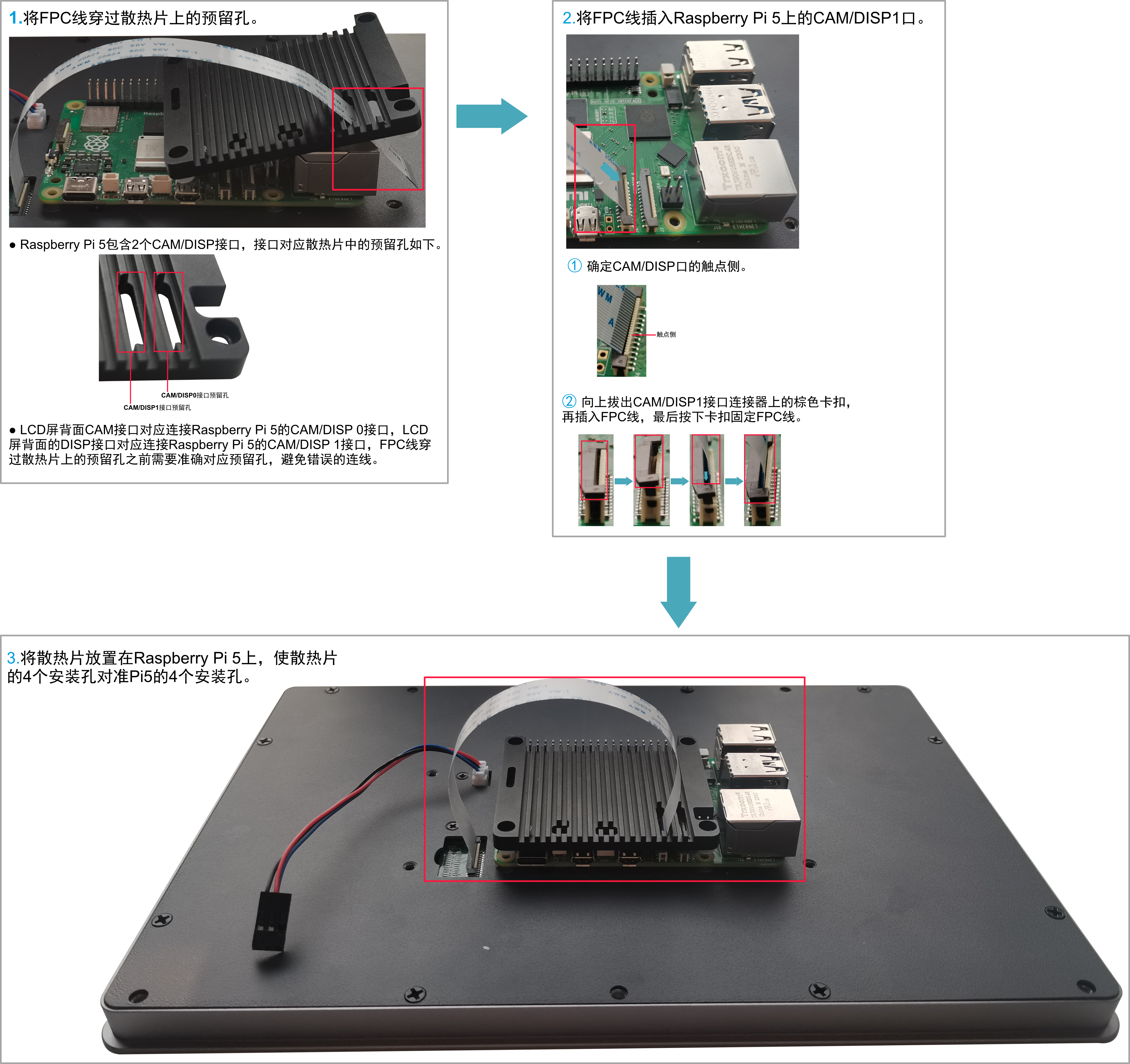 此处仅以在不带CAM接口的LCD屏上安装Raspberry Pi 5为例。