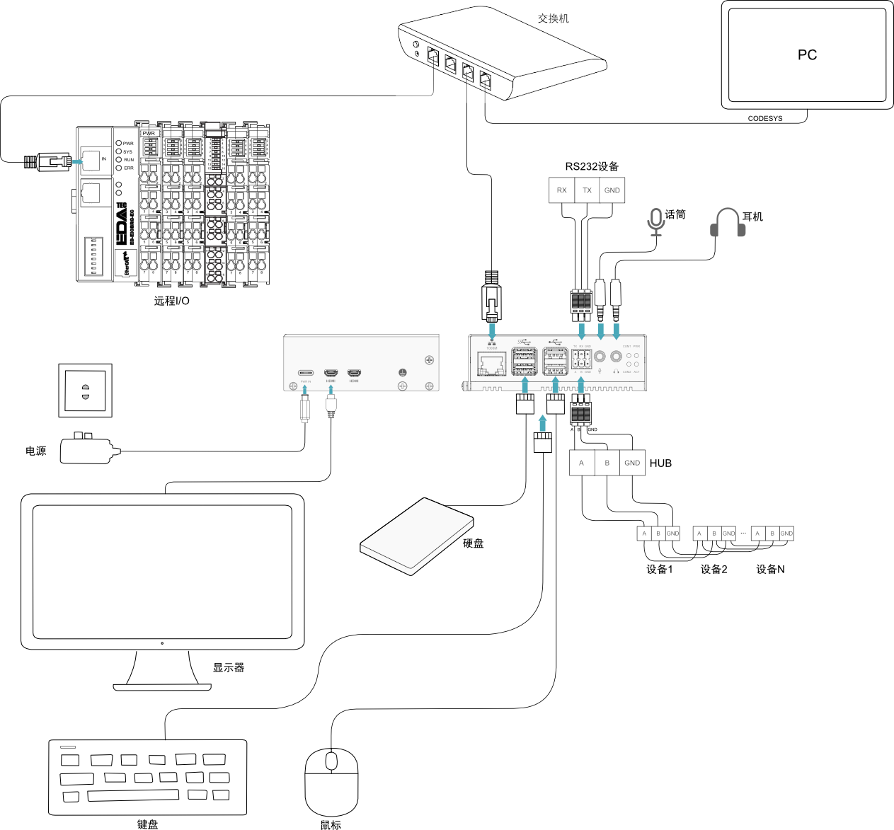 各接口的引脚定义以及连线的具体方法,请参见1.8 接口。