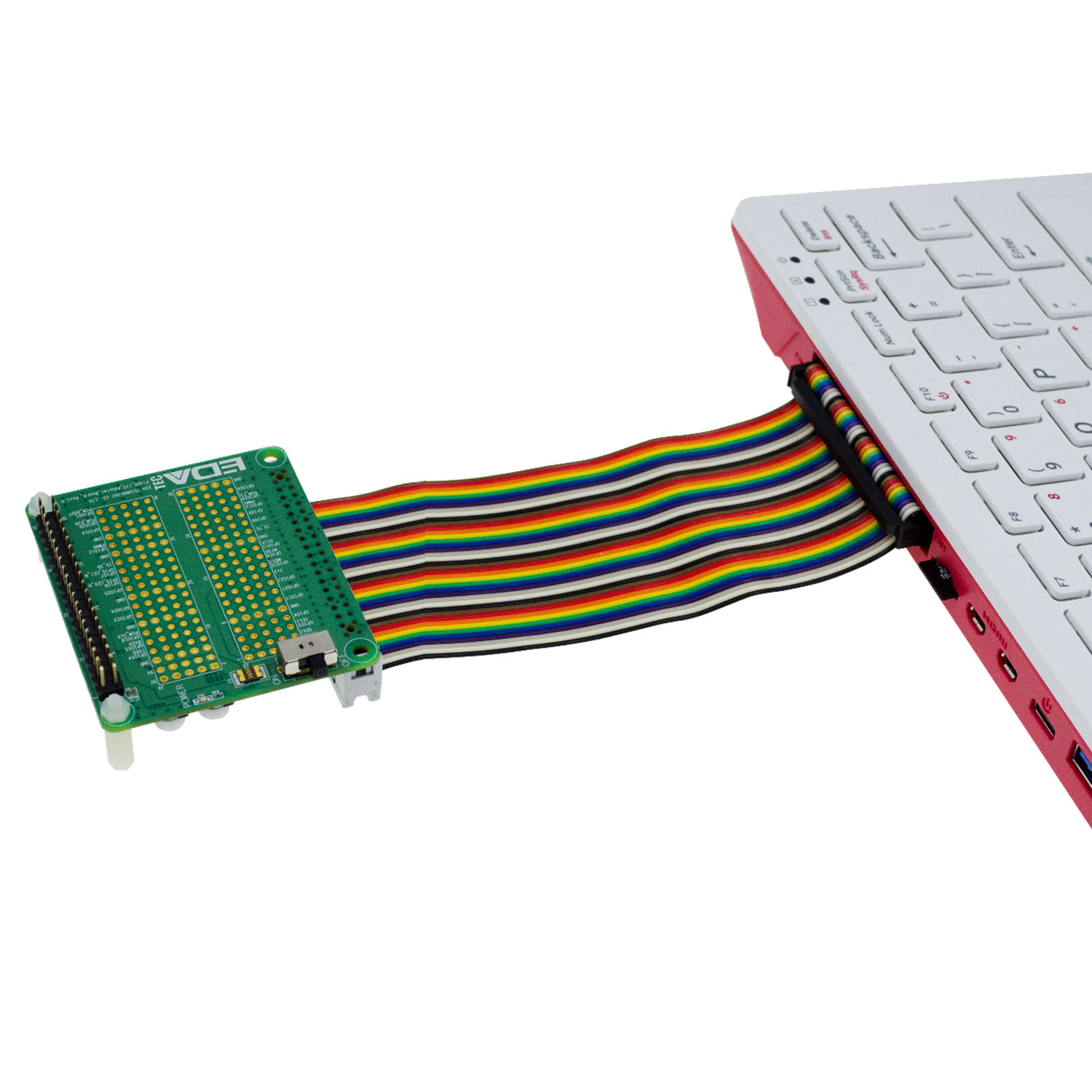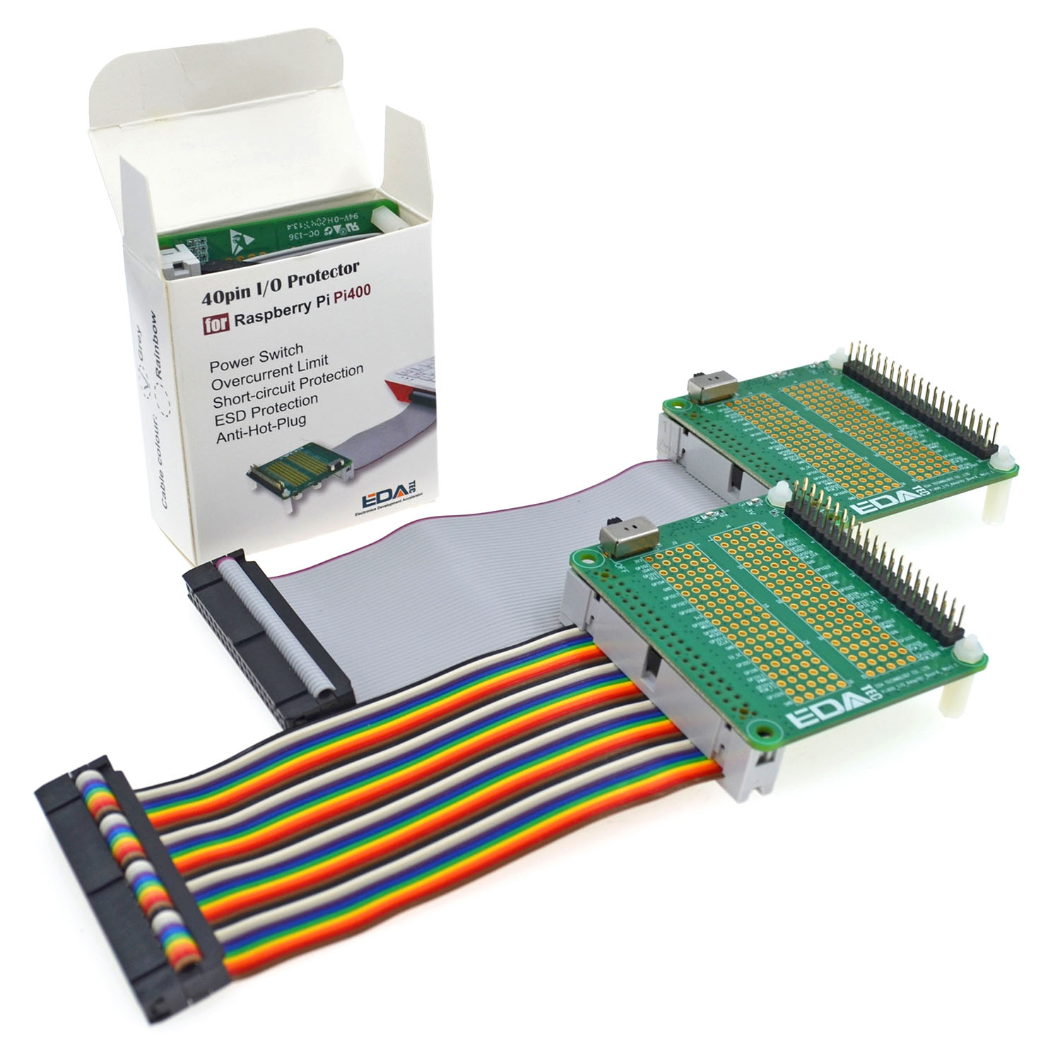 40pin GPIO Protector are made of a 40pin ribbon cable & a circuit board, the 40pin ribbon cable is to lead 40pin GPIO signals from Pi 400, Pi 500, Pi 500+ to the circuit board, the circuit board provides a seriesof functions to protect Pi 400, Pi 500, Pi 500+ computer.