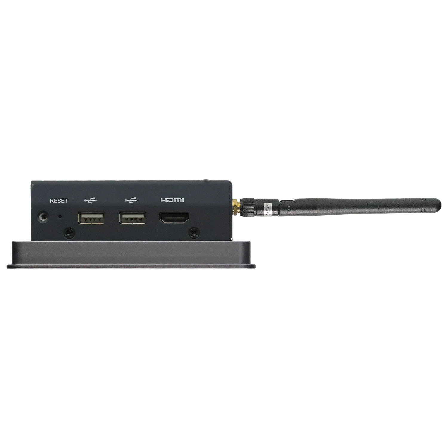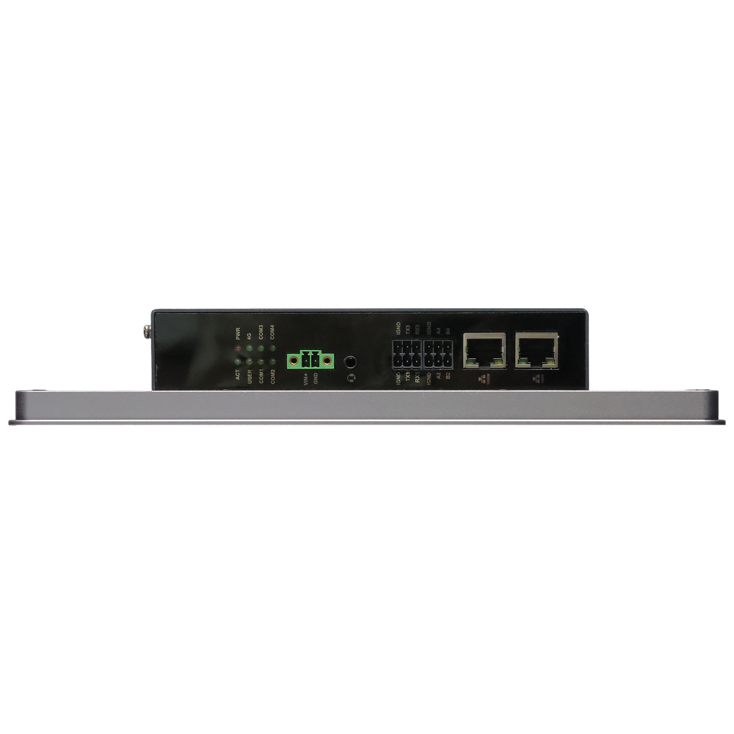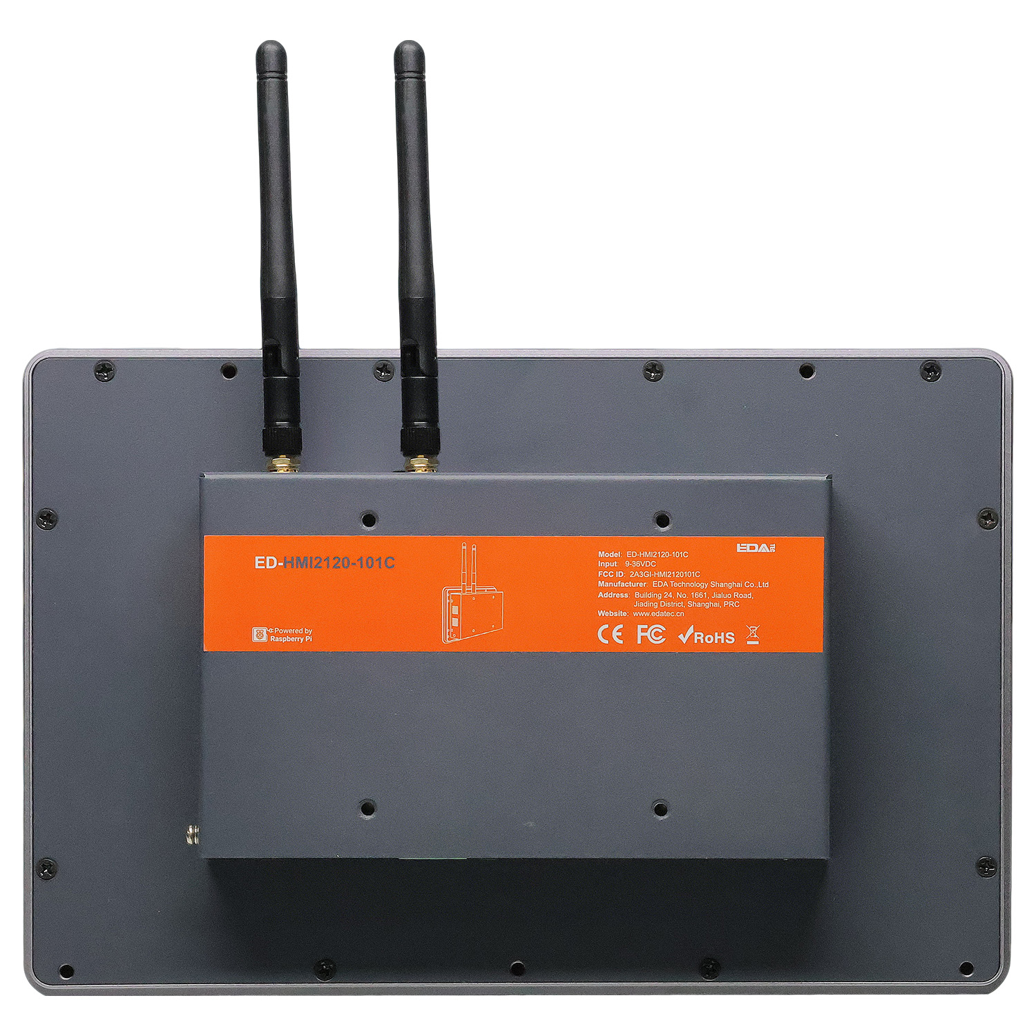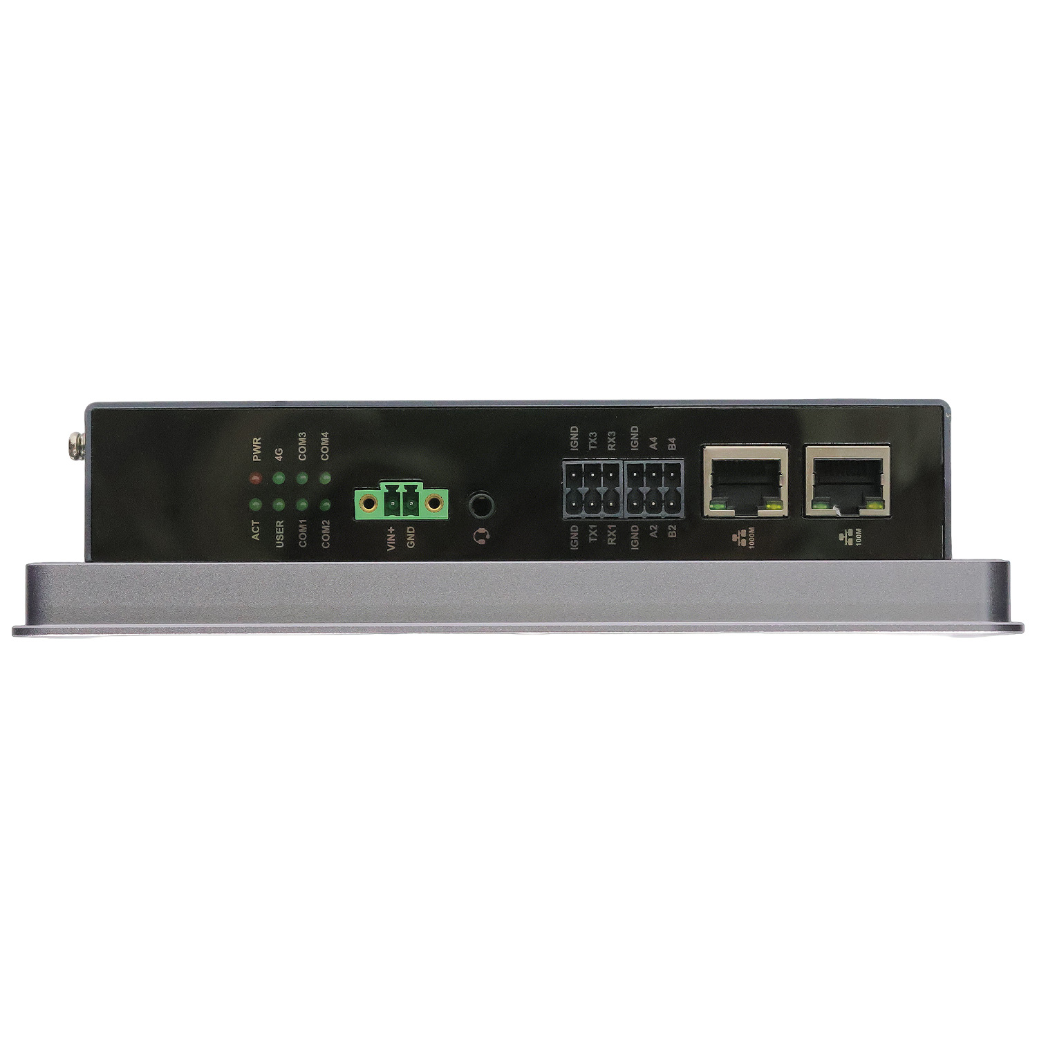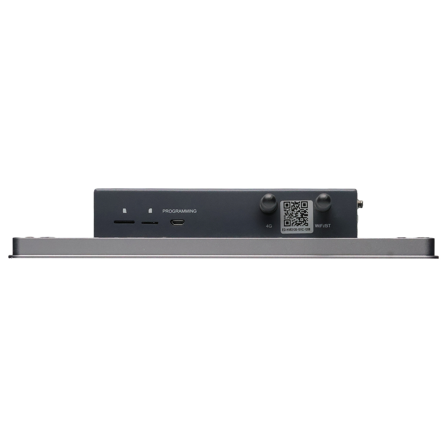 The ED-HMI2120 also features a pair of SMA ports for connecting antennas, either for 4G or Wi-Fi/BT, and a built-in speaker system. Indicators include a reset button, power indicator, 4G signal indicator, system activity indicator, and user-customizable indicator, as well as indicators for UART communication status.