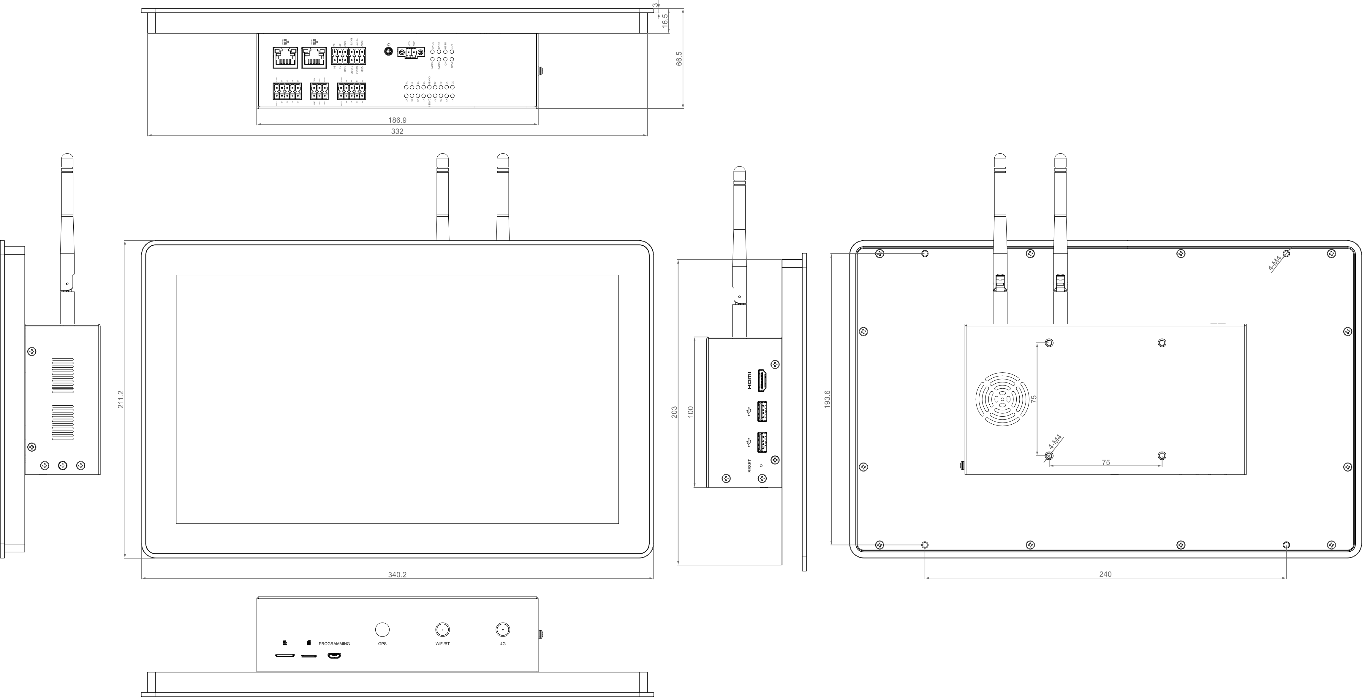 | HMI3630-133C | 13.3" | 1920 x 1080 | 16:9 | 16.7M | 450 | 160°/160° | 5 | 340.2 x 211.2 x 66.5 | About 2200g |