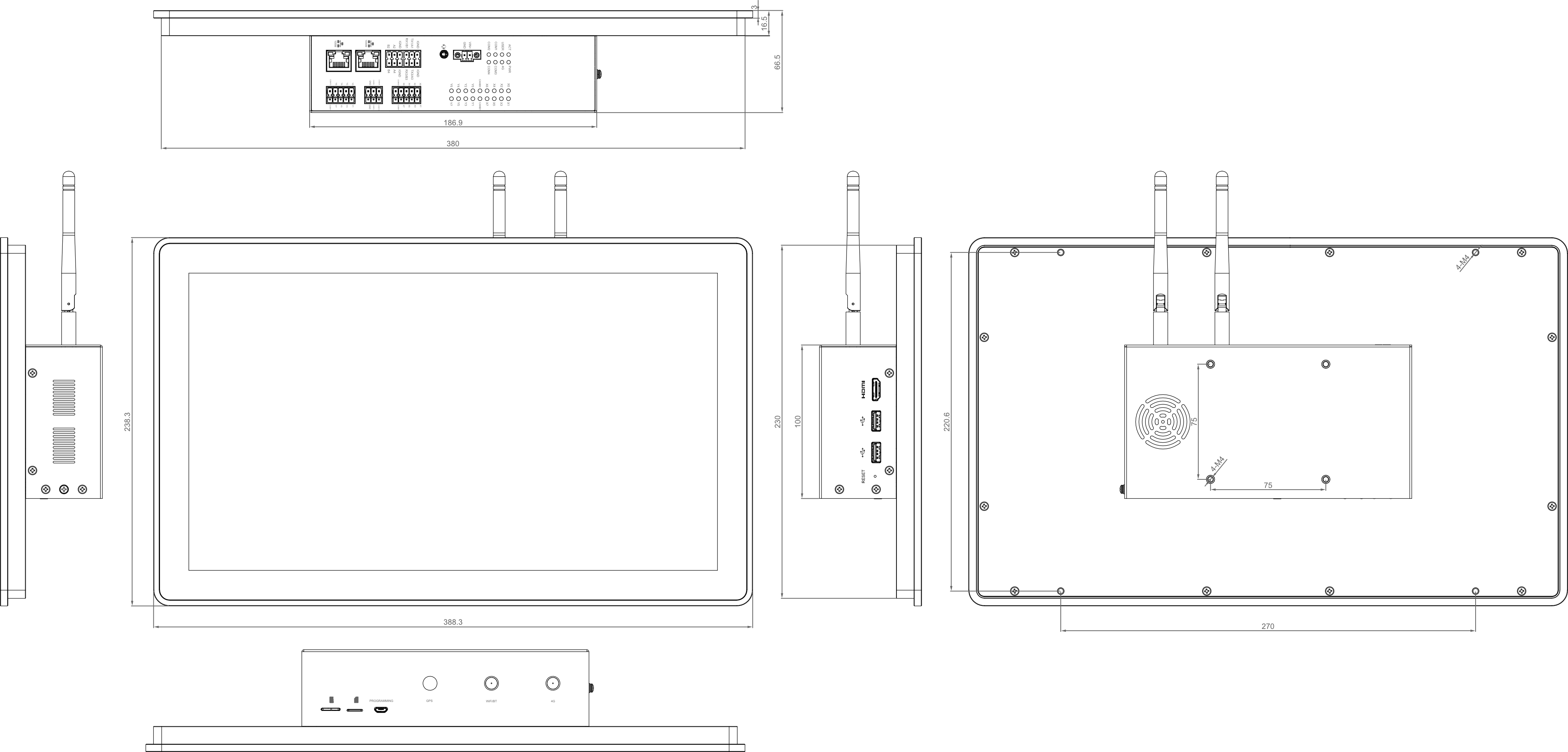 | HMI3630-156C | 15.6" | 1920 x 1080 | 16:9 | 16.7M | 450 | 170°/170° | 5 | 388.3 x 238.3 x 66.5 | About 2600g |