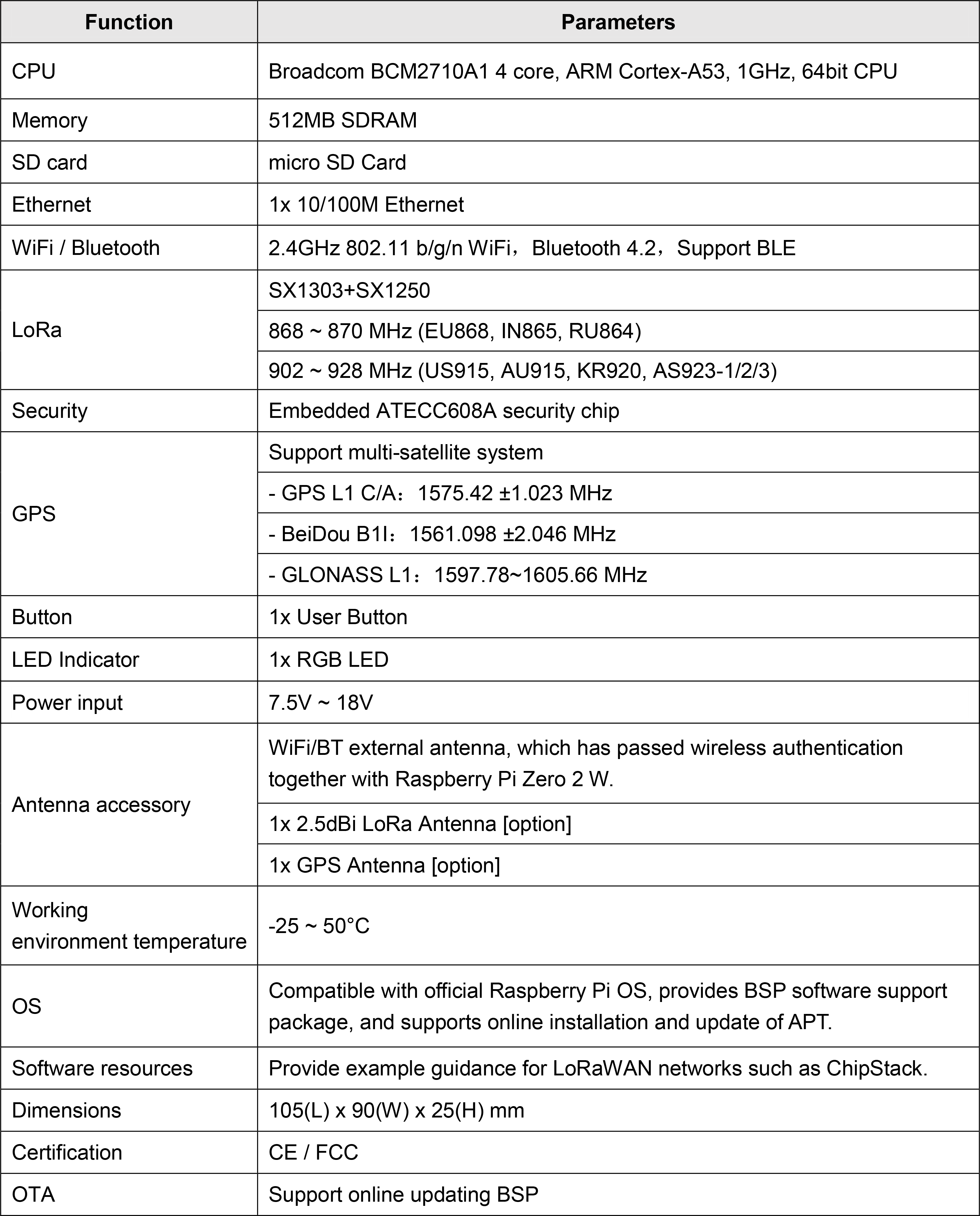 The gateway offers robust connectivity options, including a 10/100M Ethernet port for wired connections, 2.4GHz 802.11 b/g/n wireless LAN for wireless networking, and Bluetooth 4.2 with BLE for short-range communications.