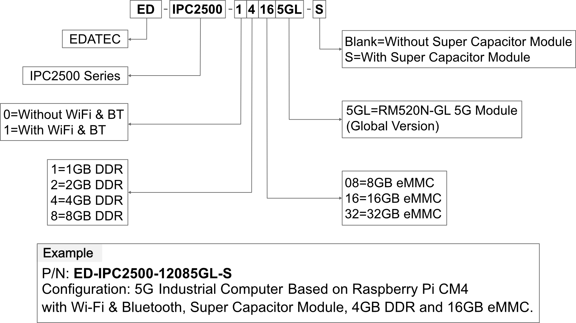 The ED-IPC2500 is an industrial computer designed with resilience and adaptability in mind, featuring a robust Broadcom BCM2711 CPU. This quad-core Cortex-A72 processor, based on the 64-bit ARM v8 architecture and clocking at 1.5GHz, offers substantial computational power. The system is configurable with up to 8GB of LPDDR4-3200 SDRAM, and storage options range from 0GB to 32GB of eMMC, with the added flexibility of a Micro SD card that supports booting the operating system and an optional mSATA SSD.