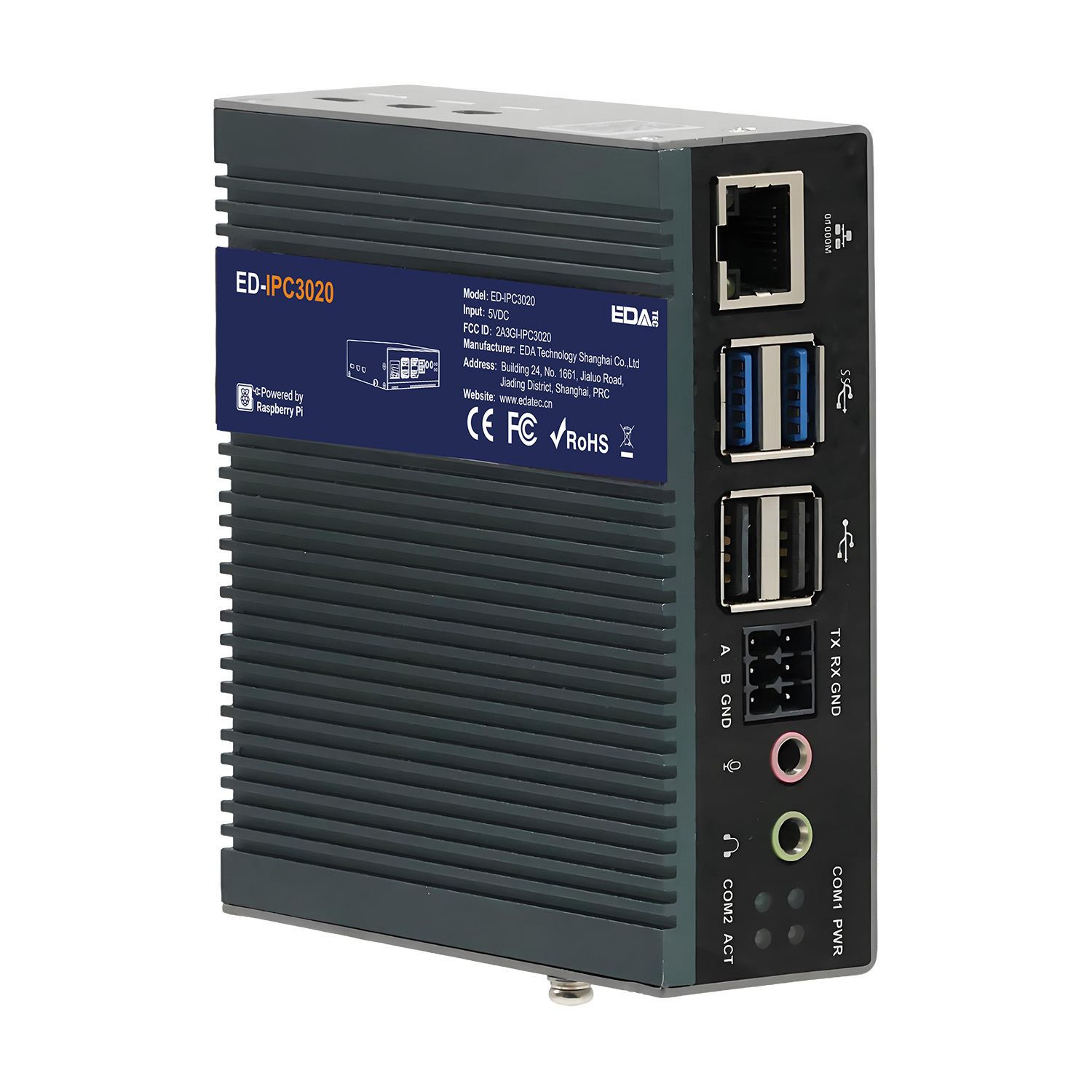 The ED-IPC3020 is an industrial computer designed with robustness and versatility in mind, featuring a Broadcom BCM2712 processor. This 2.4GHz quad-core 64-bit Arm Cortex-A76 CPU provides exceptional performance, making the ED-IPC3020 well-suited for demanding industrial applications. The system is configurable with either 4GB or 8GB of LPDDR4X-4267 SDRAM, and storage can be expanded via a Micro SD Card or an M.2 NVMe SSD, offering flexibility in data management.
