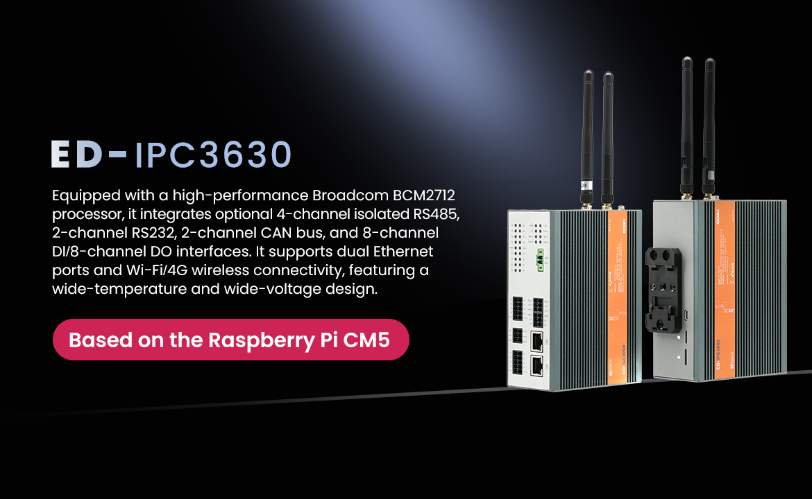 The IPC3630 Industrial Computer, based on the Raspberry Pi CM5 module, is equipped with a high-performance Broadcom BCM2712 processor and integrates optional 4-channel isolated RS485, 2-channel RS232, 2-channel CAN bus, and 8-channel DI/8-channel DO interfaces. It supports dual Ethernet ports and Wi-Fi/4G wireless connectivity, with a wide-temperature and wide-voltage design. It provides a hardware-software integrated real-time control and edge computing solution for industrial automation, robotic control, data acquisition, smart manufacturing, and other scenarios.