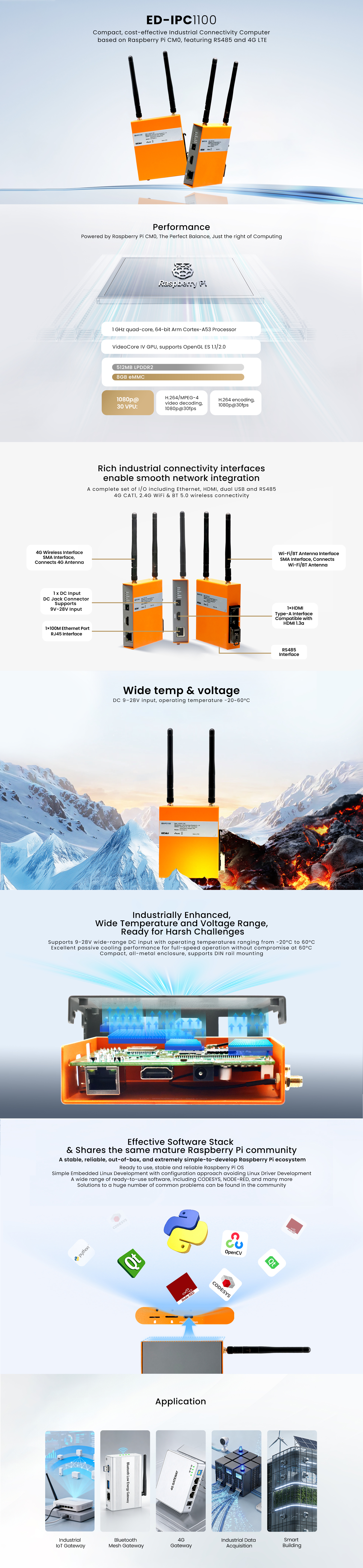 ED-IPC1100 is suitable for a wide range of applications such as industrial data acquisition, Bluetooth Mesh gateways, Industrial IoT, and 4G computing, offering an excellent cost-effective industrial connectivity solution.