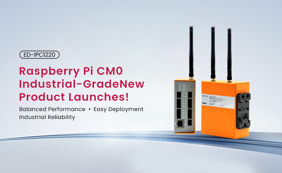 The ED-IPC1220 is an industrial-grade computer based on the Raspberry Pi Compute Module CM0, featuring a 1GHz quad-core 64-bit Arm Cortex-A53 processor, 512MB SDRAM, and optional 8GB or 16GB eMMC flash storage. For multimedia processing, it supports H.264/MPEG-4 video encoding and decoding at 1080p@30fps, while being fully compatible with OpenGL ES 1.1/2.0 graphics processing standards to meet industrial visualization needs.In terms of industrial interface configuration, the device offers rich I/O interfaces on the front panel, including one RS485 serial port, 8 digital inputs (DI) and 8 digital outputs (DO) with 3.75KV isolation protection, 2 voltage analog inputs (ADV, 0-10V) and 2 current analog inputs (ADA, 0-20mA) with 12-bit resolution and 3KHz sampling rate, as well as one 10M/100M adaptive Ethernet interface. The rear panel features a Nano SIM card slot (for 4G functionality) and one Type-C USB interface (supporting eMMC flashing). The side panel includes one USB 2.0 Type-A interface, one RS485, one RS232, a power interface (supporting 9V-28V wide voltage input), and two optional SMA antenna connectors (for 4G and Wi-Fi/BT).For wireless communication, the ED-IPC1220 provides flexible optional configurations: 2.4GHz Wi-Fi + Bluetooth 5.0 dual-mode modules, as well as region-specific 4G CAT1 modules. A built-in RTC (Real-Time Clock) with a 1F supercapacitor backup.Mechanically engineered for industrial environments, the product boasts a compact metal enclosure with a net weight of approximately 435g, supporting standard DIN rail mounting for easy deployment. It maintains reliable operation within a wide temperature range of -20°C to 60°C, making it ideal for industrial automation, IoT data acquisition, and edge computing