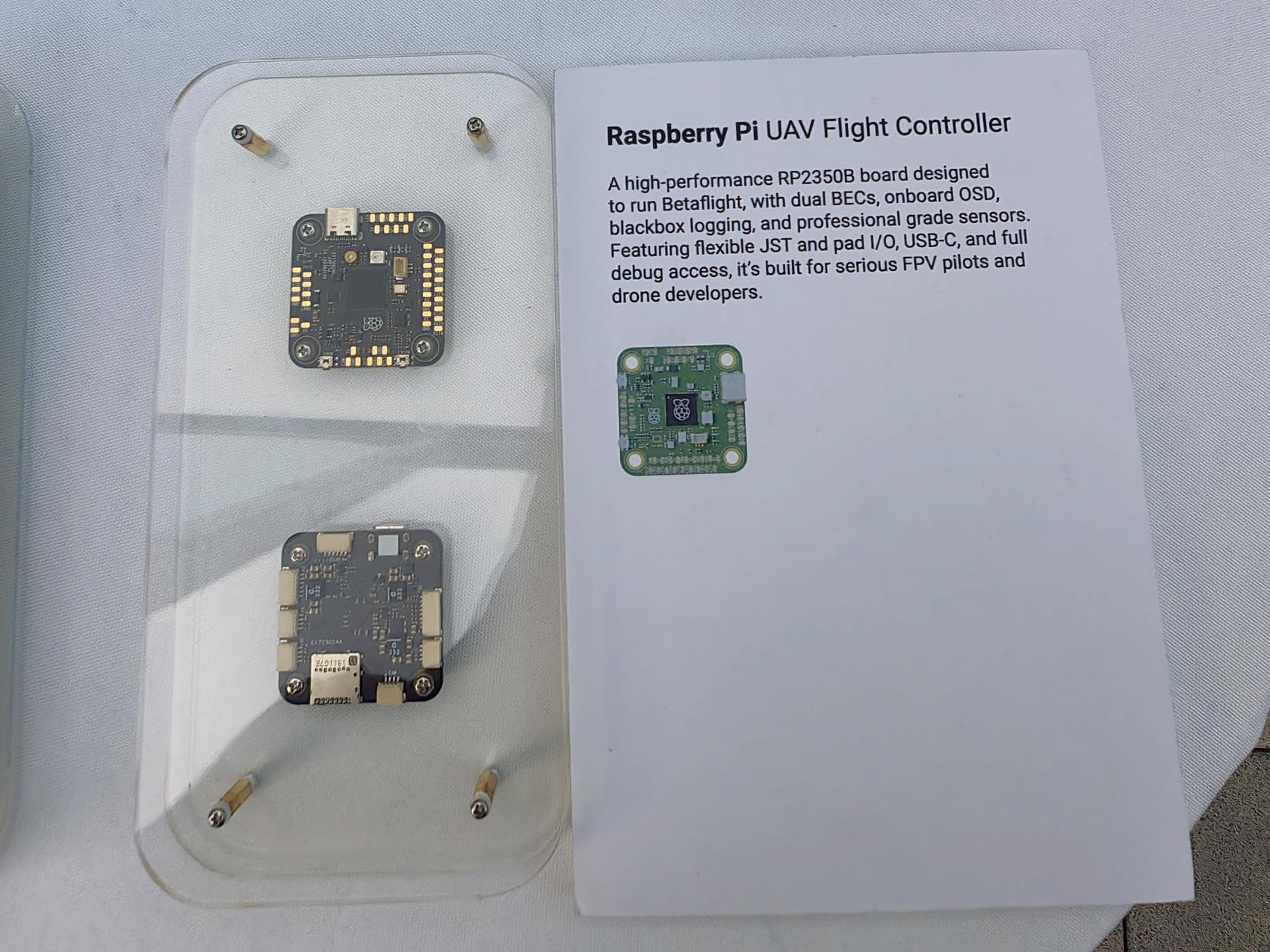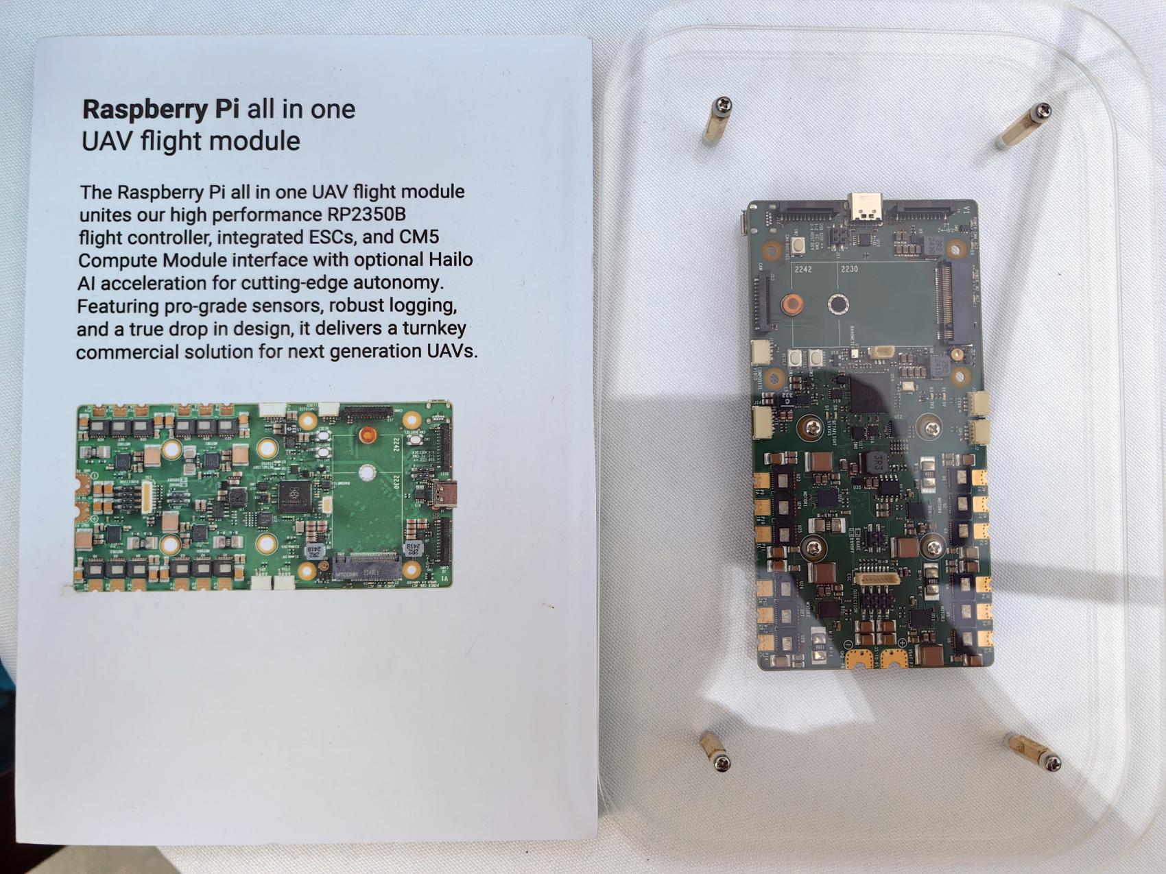 The Raspberry Pi all in one UAV flight moduleunites our high performance RP2350Bflight controller, integrated ESCs, and CM5Compute Module interface with optional HailoAI acceleration for cutting-edge autonomy.Featuring pro-grade sensors, robust logging,and a true drop in design, it delivers a turnkeycommercial solution for next generation UAVs.
