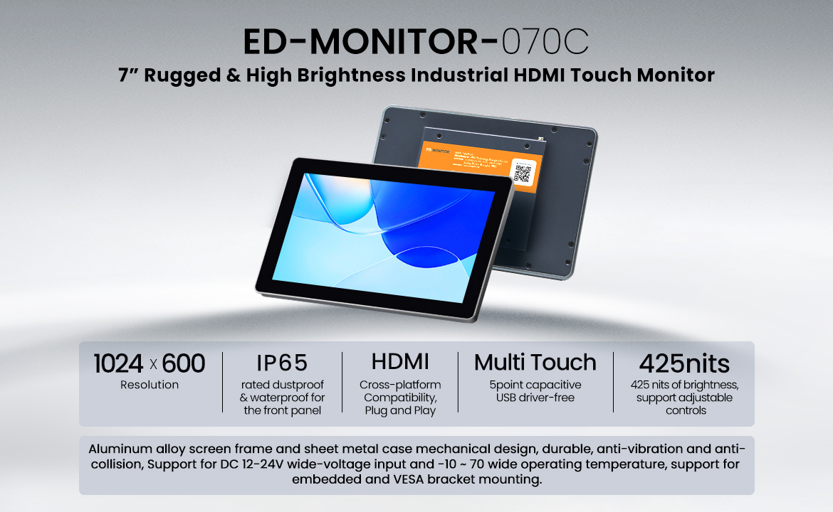 7” Rugged & High Brightness Industrial HDMI Touch Monitor
