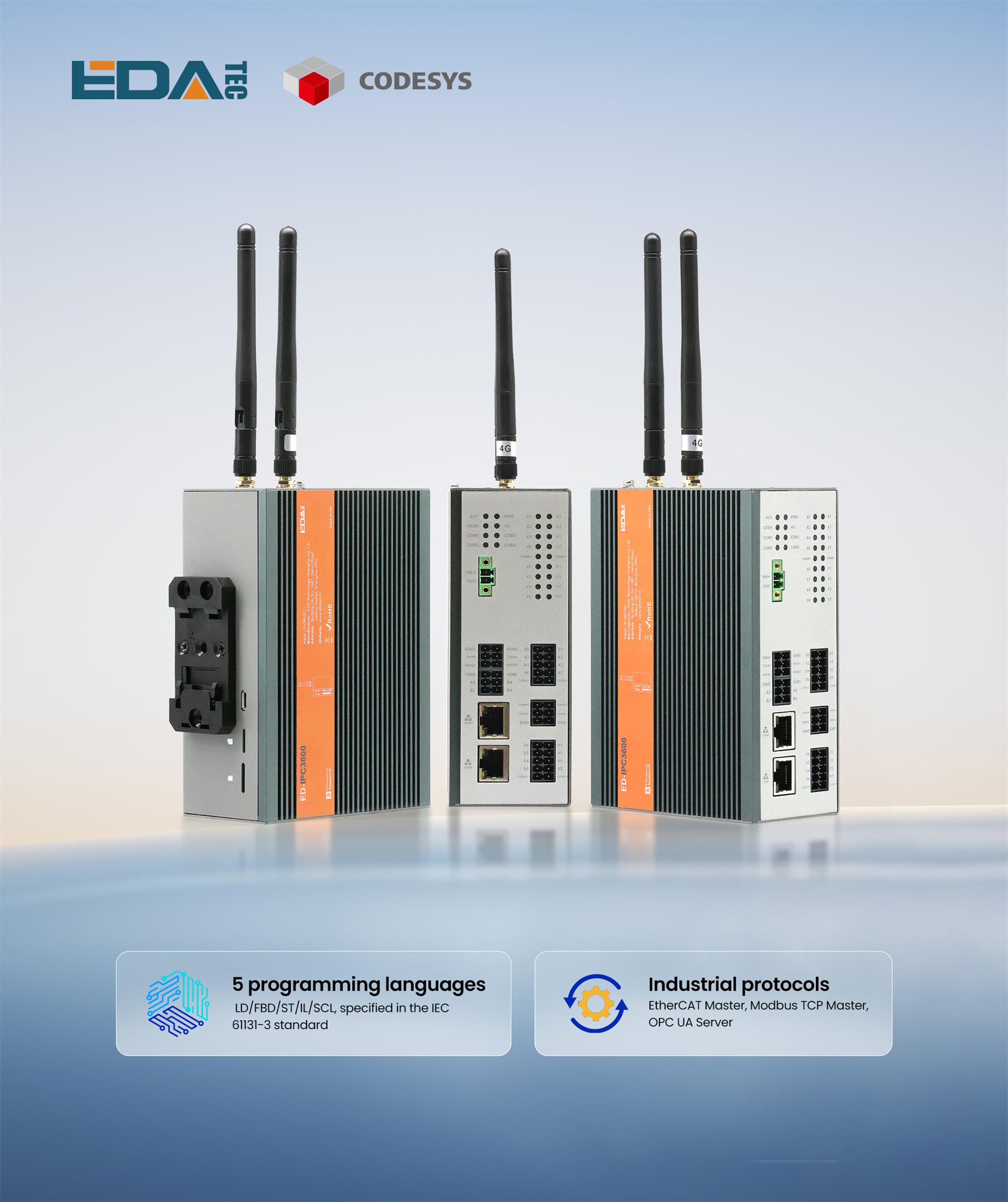 EDATEC has established a deep strategic partnership with CODESYS, with all IPC products fully compatible with CODESYS and offering end-to-end support from authorization to application. The IPC3600 can be pre-installed with the CODESYS runtime environment upon request. With this pre-installation, the device achieves full compatibility with the five programming languages specified in the IEC 61131-3 standard (LD/FBD/ST/IL/SCL), and supports industrial protocols including EtherCAT Master, Modbus TCP Master, and OPC UA Server, realizing seamless integration with enterprises’ existing MES and SCADA systems.