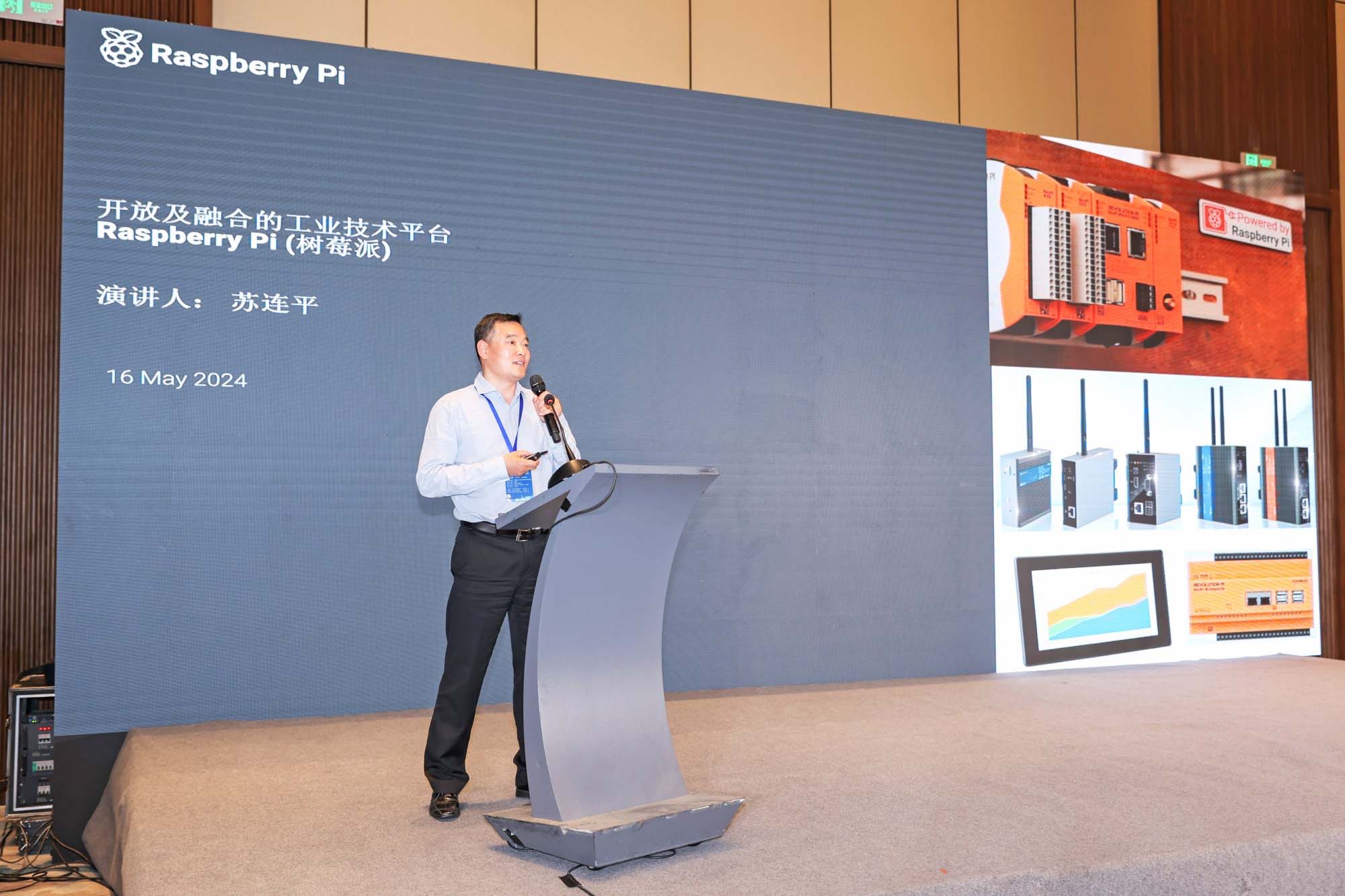 On May 15, 2024, the 15th anniversary celebration of CODESYS China and the 2024 annual conference of the National Smart Manufacturing Digital Innovation Ecosystem Alliance were grandly held in Jinan, Shandong. This grand event aimed to bring together elites in the smart manufacturing field to jointly explore the future development direction of the industry and promote the healthy development of the digital innovation ecosystem. Mr. Su Lianping, the founder and CEO of our company EDATEC, was invited as a guest and had the honor to attend the event and deliver a wonderful speech titled "An Open and Integrated Industrial Technology Platform - Raspberry Pi". In his speech, Mr. Su delved deeply into the applications and prospects of Raspberry Pi in the field of smart manufacturing, which aroused widespread attention and heated discussion among the attendees.