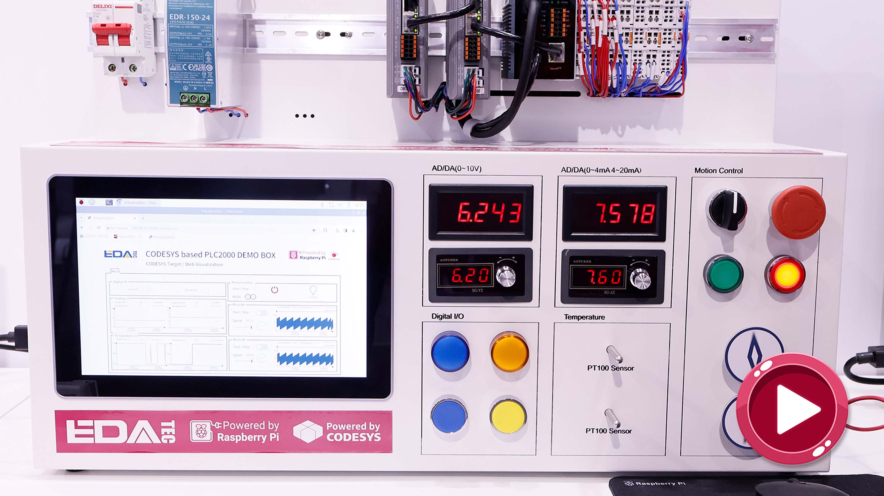 This is an intelligent manufacturing solution based on the embedded Raspberry Pi CM4, integrating EDATEC's PLC and 10.1-inch HMI. The EDATEC PLC adopts CODESYS technology, supporting a wide range of digital/analog I/O modules and motion control functions, capable of supporting up to 32 different types of I/O modules, and providing Modbus TCP/IP and EtherCAT communication interfaces.