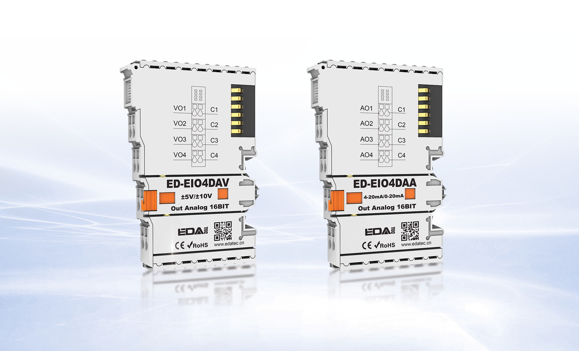 - ED-EIO4DAV: 4-channel voltage output module, -55V/010V/-10~10V, configurable.
