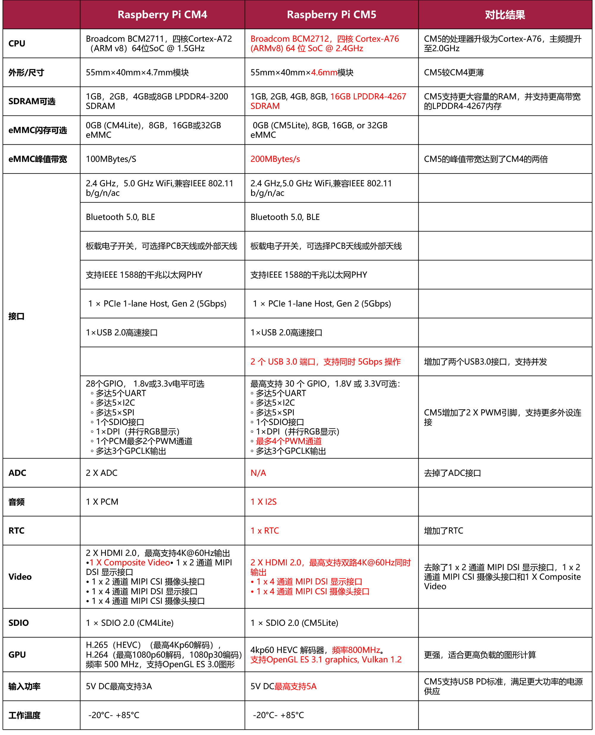 CM5的设计大致基于Raspberry Pi 5,对于成本敏感型应用,它可以不选择eMMC;这个版本被称为Raspberry Pi处理器模块5精简版(CM5Lite)。
