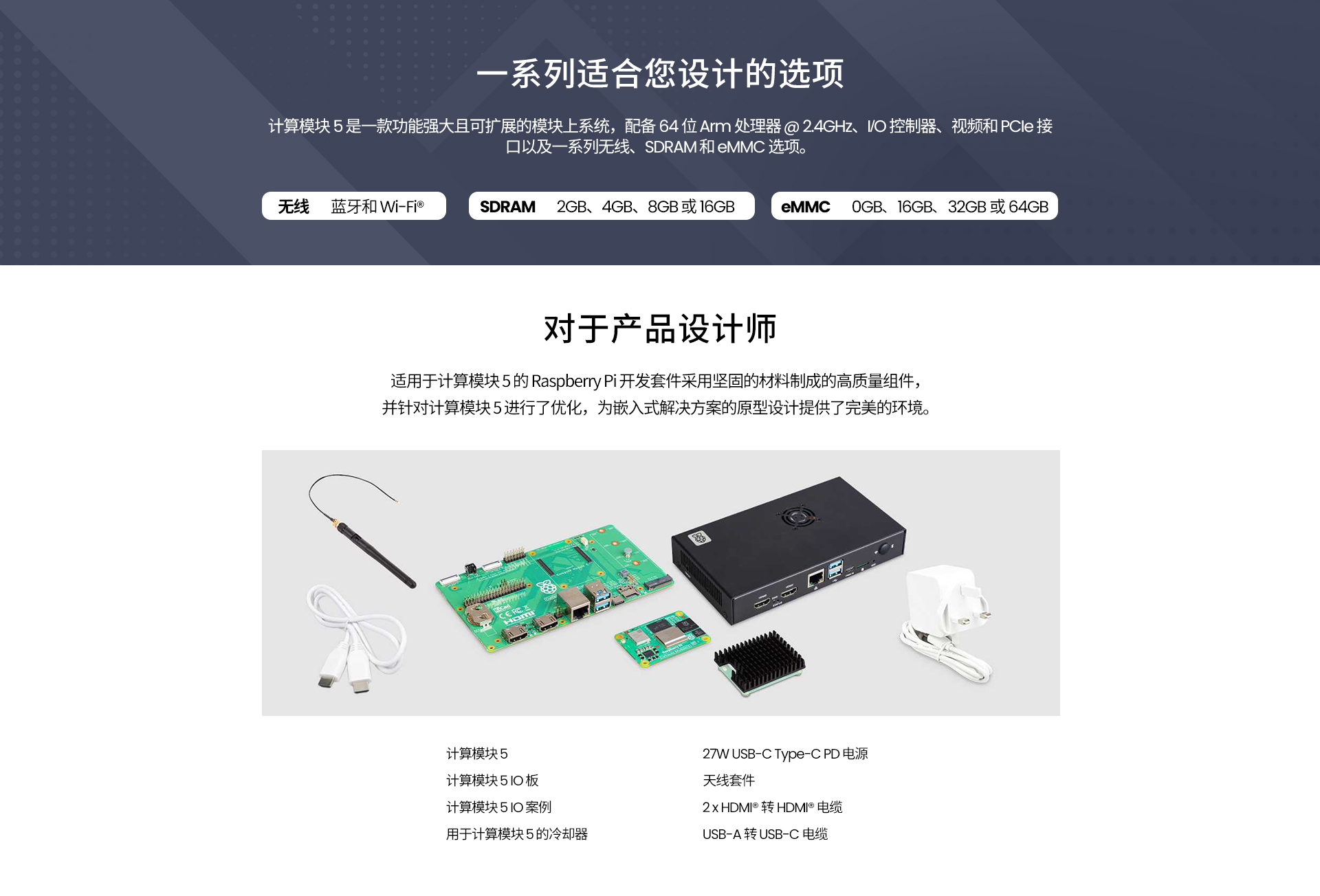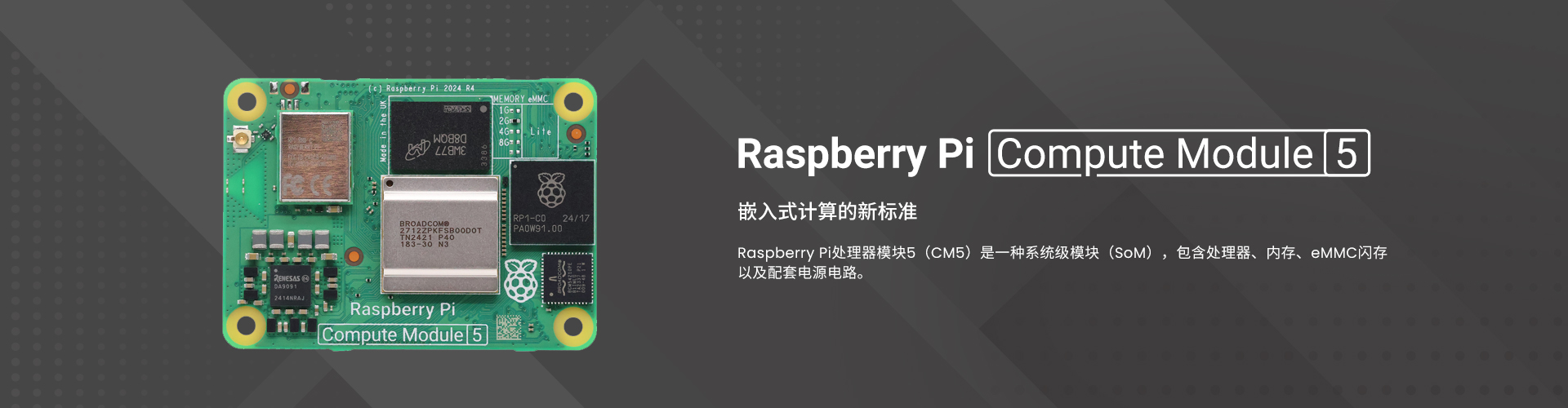Raspberry Pi处理器模块5(CM5)是一种系统级模块(SoM),包含处理器、内存、eMMC闪存以及配套电源电路。