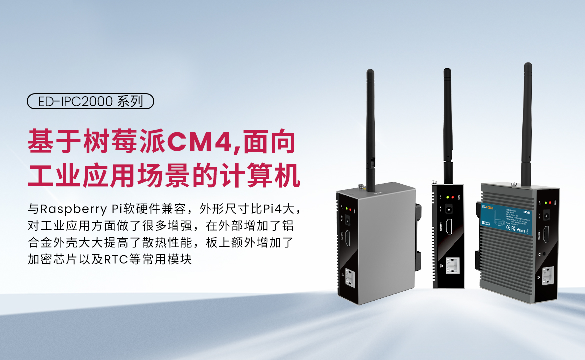 ED-IPC2000系列是由上海晶珩推出的一款工业计算机,主要面向工业应用场景。这款计算机基于Raspberry Pi CM4设计,与Raspberry Pi在软硬件上都兼容。它的尺寸略大于Pi4,并且针对工业应用进行了增强,例如增加了铝合金外壳以提高散热性能,并且板上还增加了加密芯片和RTC等常用模块。