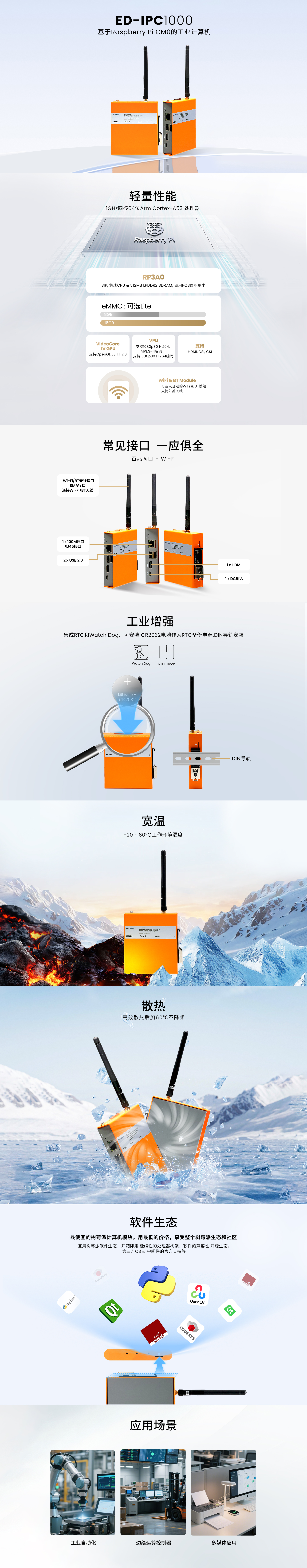 ED-IPC1000搭载了主频1GHz的四核64位Arm Cortex-A53处理器,性能均衡可靠;