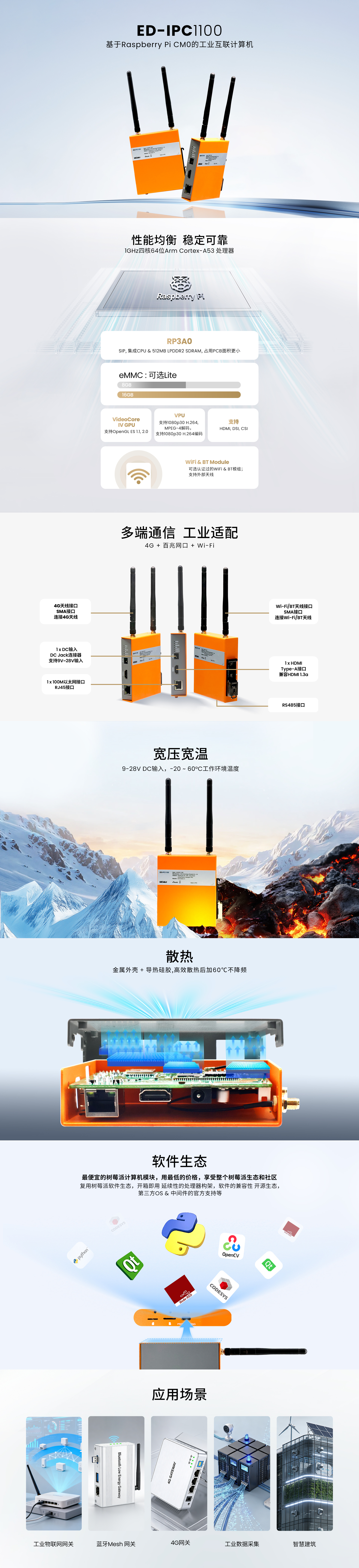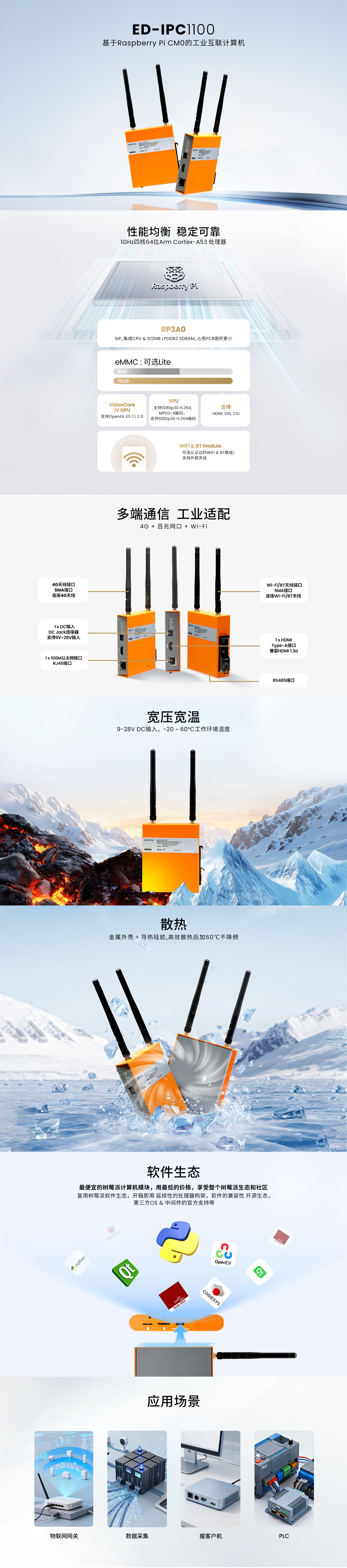 ED-IPC1100搭载主频1GHz的四核64位Arm Cortex‑A53处理器,性能均衡可靠;