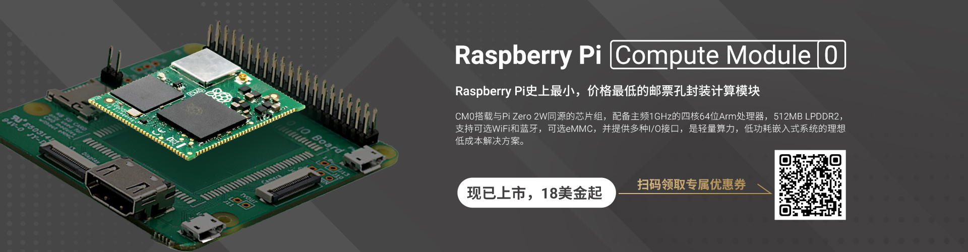 低成本,低功耗,紧凑型邮票孔封装计算模块,用最低的价格,享受整个Raspberry Pi生态和社区!