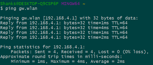 # Alias for this routerRaspberry Pi 将分配192.168.4.20 到 192.168.4.50 之前的ip给连接设备,租赁时间为24小时。连接设备可以通过gw.wlan域名访问Raspberry Pi。