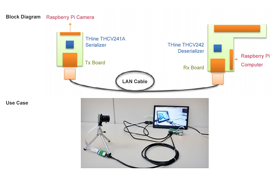 THSER101 extends the cable length up to 20 meters from the Camera to the RPi Computer with a regular LAN Cable.